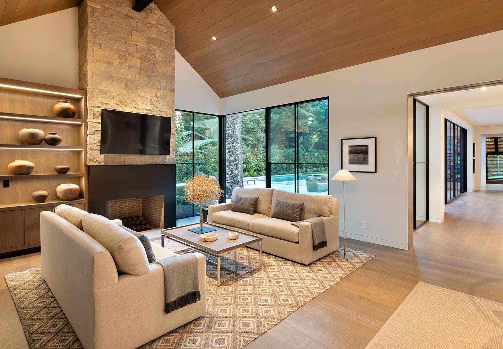 A natural modern home in old Palo Alto designed with a focus on clean lines, walls of glass and natural textures. The end result is a light-filled home that is as beautiful as it is warm.