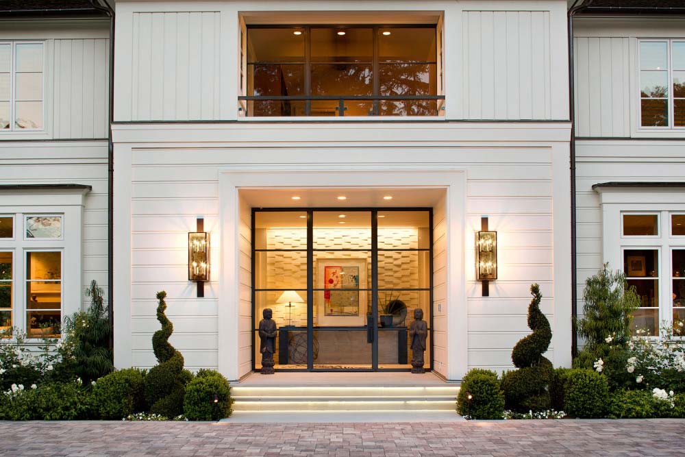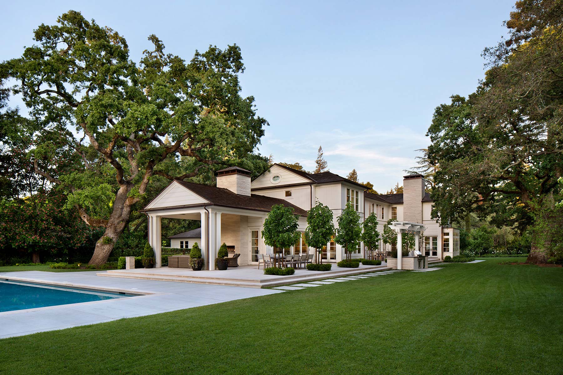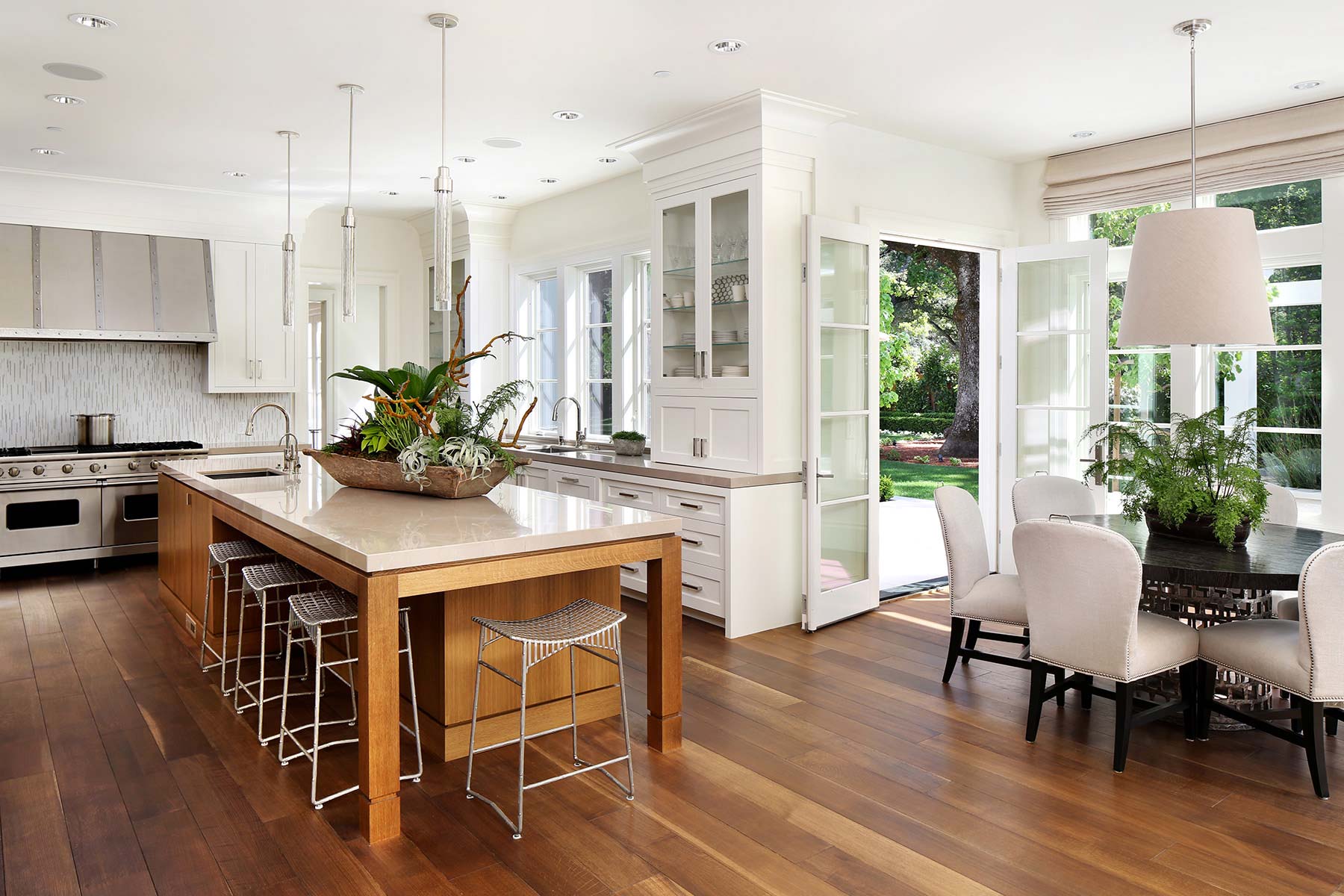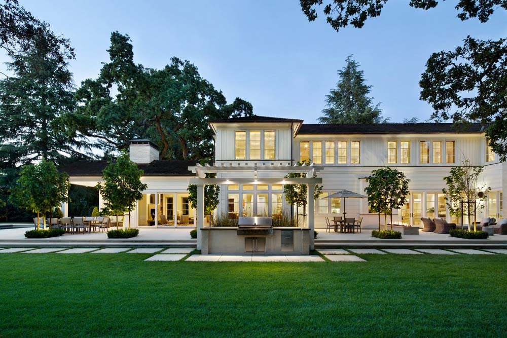 Transitional Farmhouse A Silicon Valley family home designed to celebrate natural surroundings and California’s blended indoor and outdoor living.Interior Design: LSquared DesignArchitecture: Steve SimpsonPhotography: Bernard André
