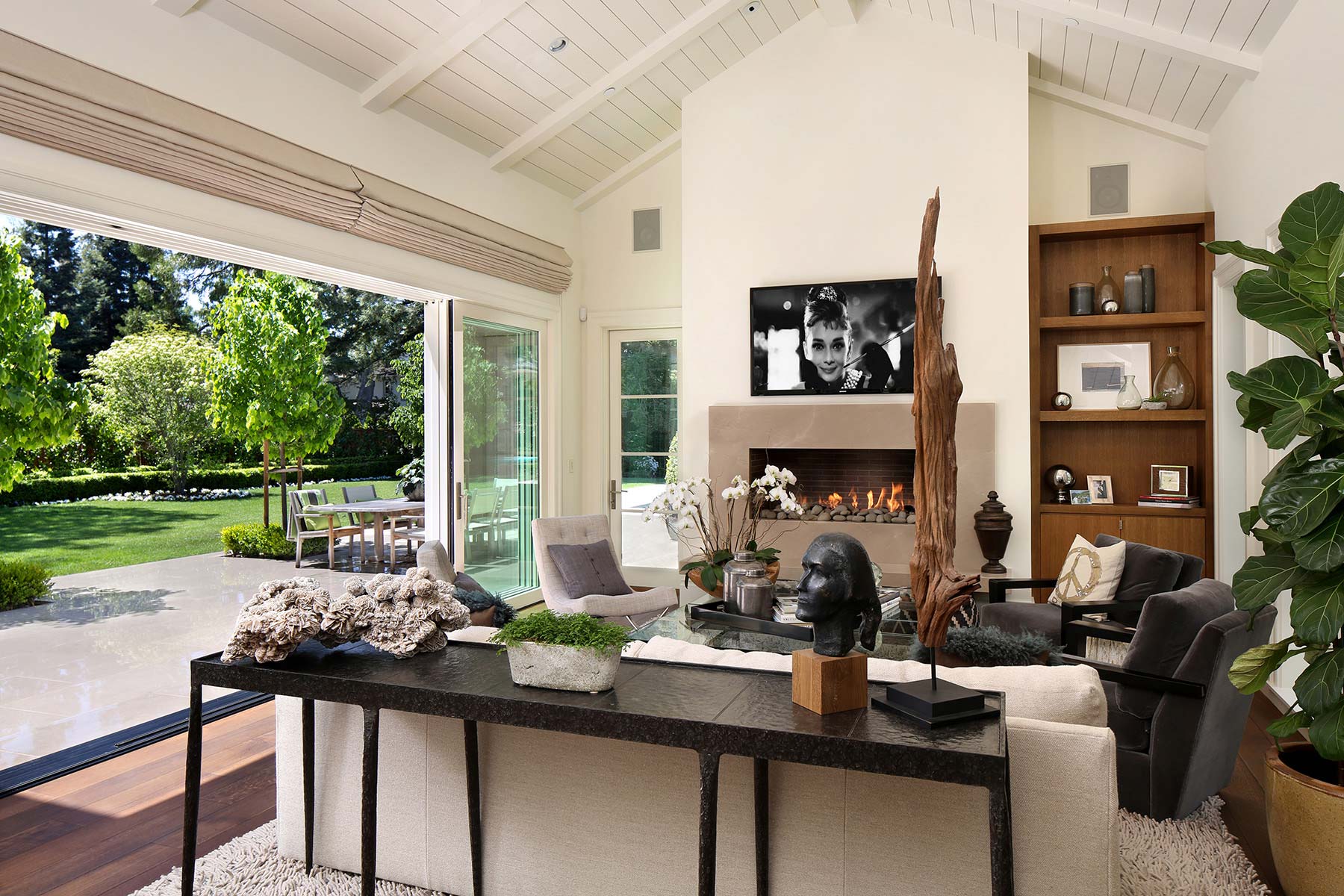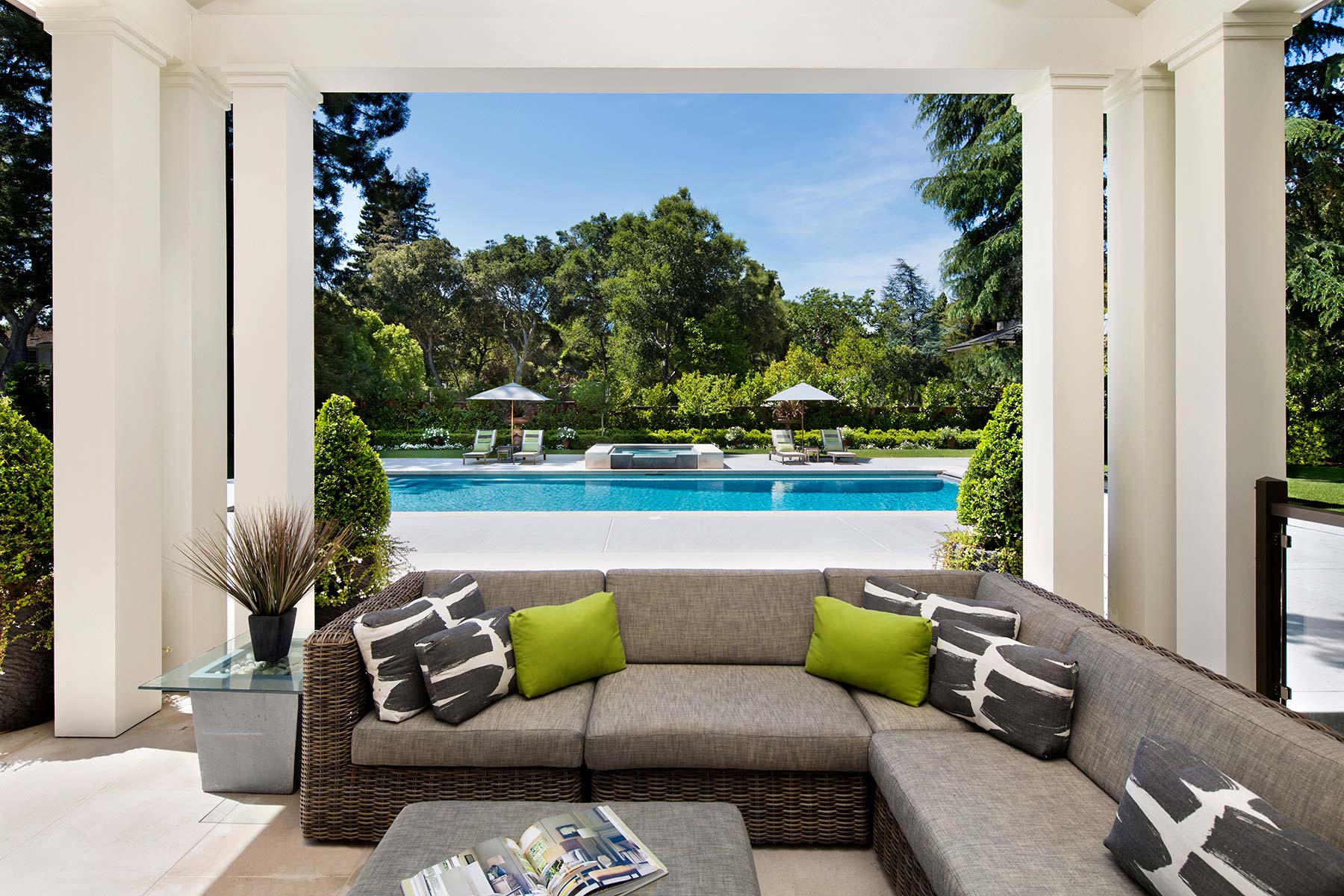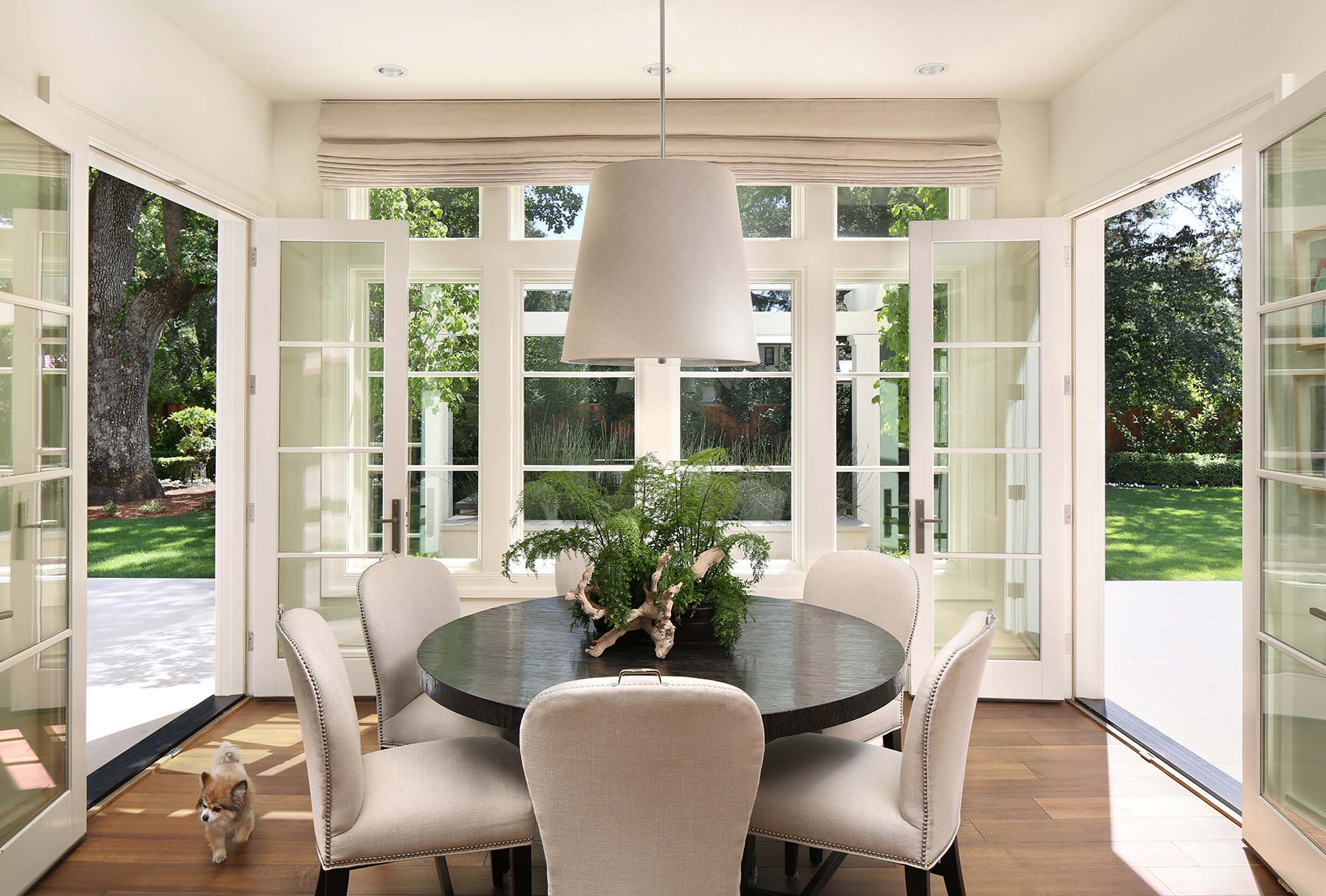 Transitional Farmhouse A Silicon Valley family home designed to celebrate natural surroundings and California’s blended indoor and outdoor living.Interior Design: LSquared DesignArchitecture: Steve SimpsonPhotography: Bernard André